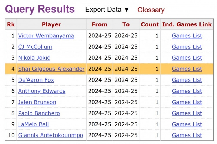 - 空砍52分!亚历山大多次砍下50+ 联盟本赛季首人