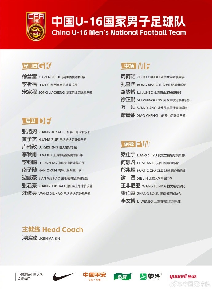 - U16国足集训名单:梁仕宇、万项、邝兆镭在列,泰山8人